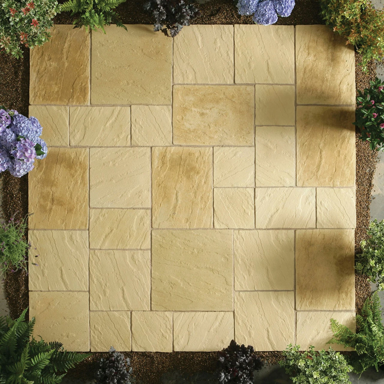 Abbey Random Patio Kit 5.76m – York Gold Includes: 8 x 300m x 300m 6 x 300mm x 450mm 8 x 450mm x 450mm 7 x 450mm x 600mm 2 x 600mm x 600mm Abbey Paving is available in York Gold and Antique and reflects the fresh hewn look of natural quarried flagstones. Delivery to be expected within 7 working days – kerbside delivery