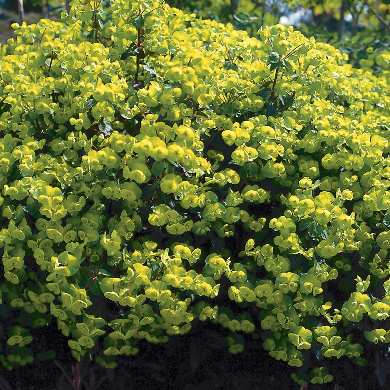 es and avoid direct contact with the eyes or skin.Wood Spurge A useful groundcover for an awkward site – new growth is purple red surmounted by a vivid yellow bract – a great contrast – the foliage colour fades as the season progresses but retains red shades. Keep an eye out for mildew and spray as soon as the first signs are seen.